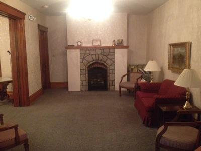 The Funeral Home was built in the late 1800’s and is a colonial style setting. The interior setting is the old traditional style with custom vintage oak woodwork, which gives an elegant comfortable feeling. Many visitors enjoy the custom craftsmanship of the old pocket doors. The design of the home allow visitors and family members to visit in one of the family or sitting rooms with out disturbing the main visitation and greeting area. We have had several additions through the years to accommodate our families. We have a large indoor heated handicap entrance area to accommodate visitors if the family receiving line is lengthy in inclement weather conditions. Our latest expansion includes a newly remodeled family lounge and handicap restroom with baby changing accommodations. Our goal is to provide a comfortable atmosphere during a stressful time for the family and provide sincere personal service.